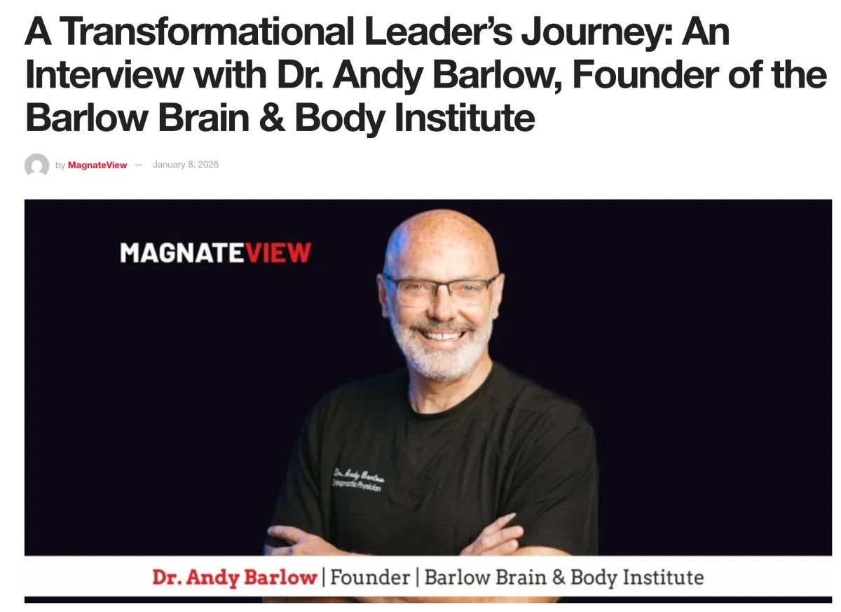 Featured in MagnateView, Dr. Andy Barlow, founder of the Barlow Brain & Body Institute and a three-time bestselling author, shares his journey, clinical philosophy, and vision for the future of functional neurology. In this in-depth interview, Dr. Barlow discusses leadership, innovation, and the upstream principles shaping modern brain–body health care. Read the full interview